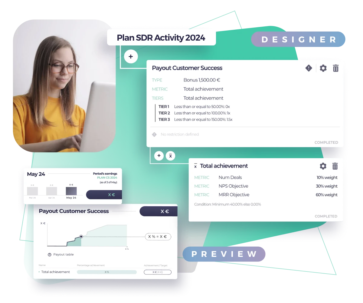 Descubre la solución definitiva para el diseño de planes de incentivos. Con nuestro módulo diseñador, puedes crear y cambiar o adaptar de manera flexible cualquier plan de compensación que tu negocio requiera. Toma el control completo sin depender de otros equipos, desarrolladores o socios externos.