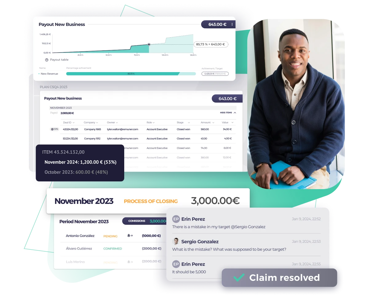 Mejora la eficiencia y elimina errores manuales con cálculos automatizados en tiempo real. Optimiza todas las tareas administrativas como la validación y cierre de periodos, gestión de reclamaciones y overrites. Crea y gestiona informes de comisiones con total transparencia para los equipos.