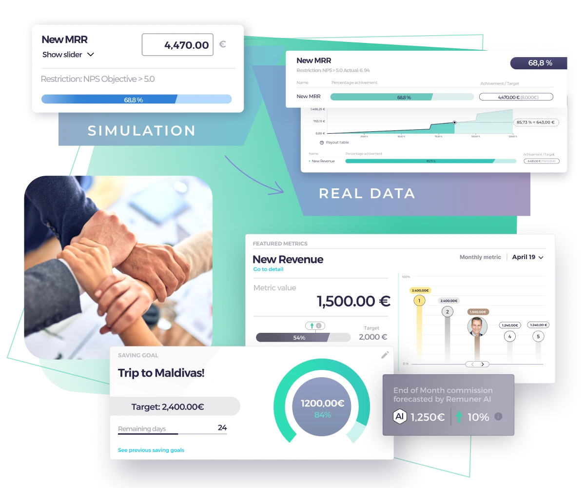 Lleva tu estrategia de retribución variable al siguiente nivel. Diseña cualquier esquema de incentivos que puedas imaginar, compara planes, aprovecha el coaching de IA y obtén visibilidad de los ingresos para tomar decisiones más inteligentes. Maximiza los resultados y mantente por delante de la competencia con Remuner.