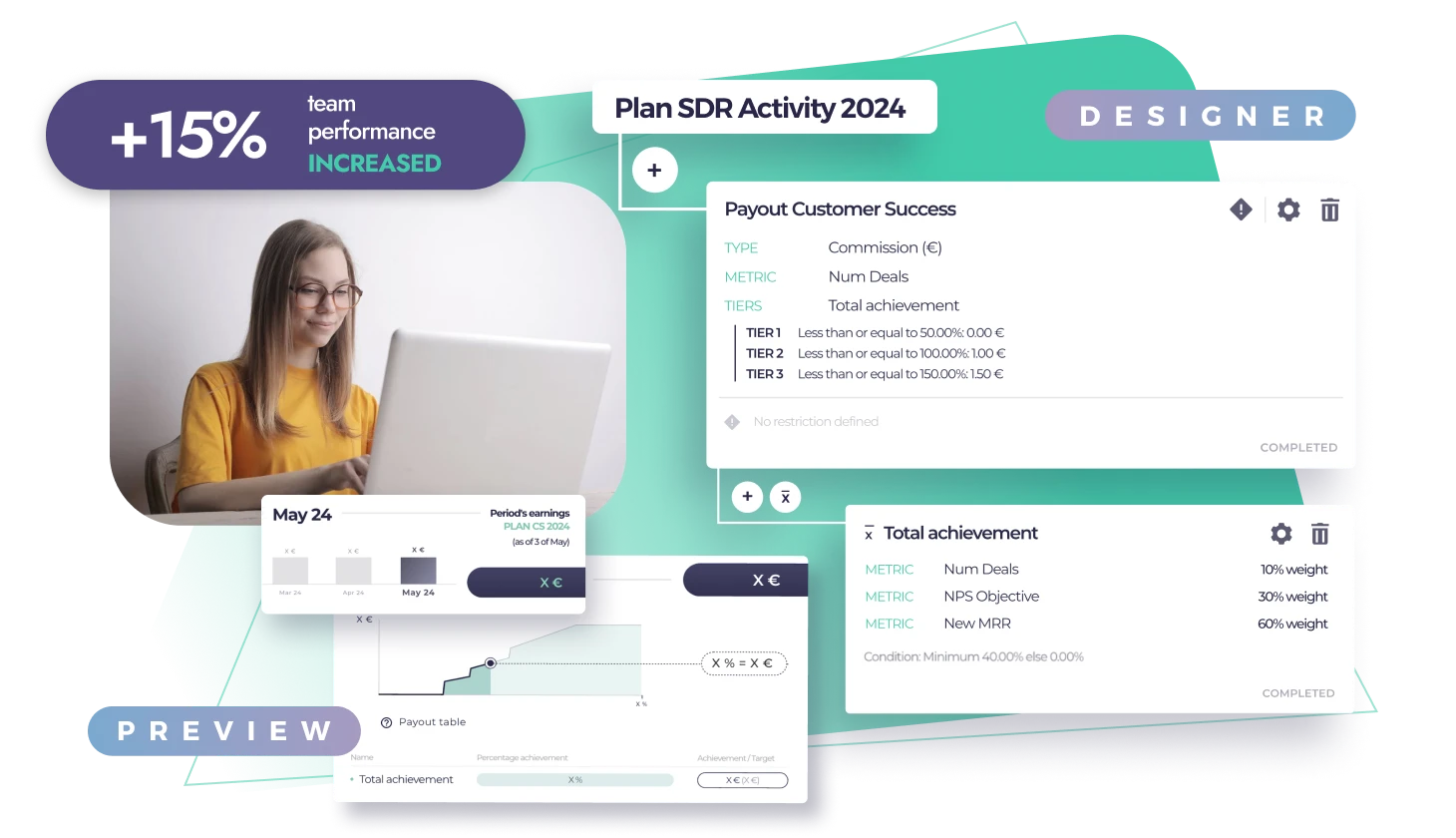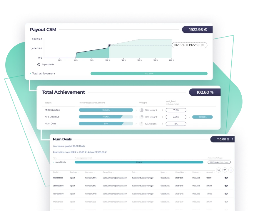 Design any incentive plan your business needs, no matter how complex it is, and change them flexibly as your company evolves. From recurrent plans to temporary challenges or campaigns to motivate your teams, Remuner has you covered!
